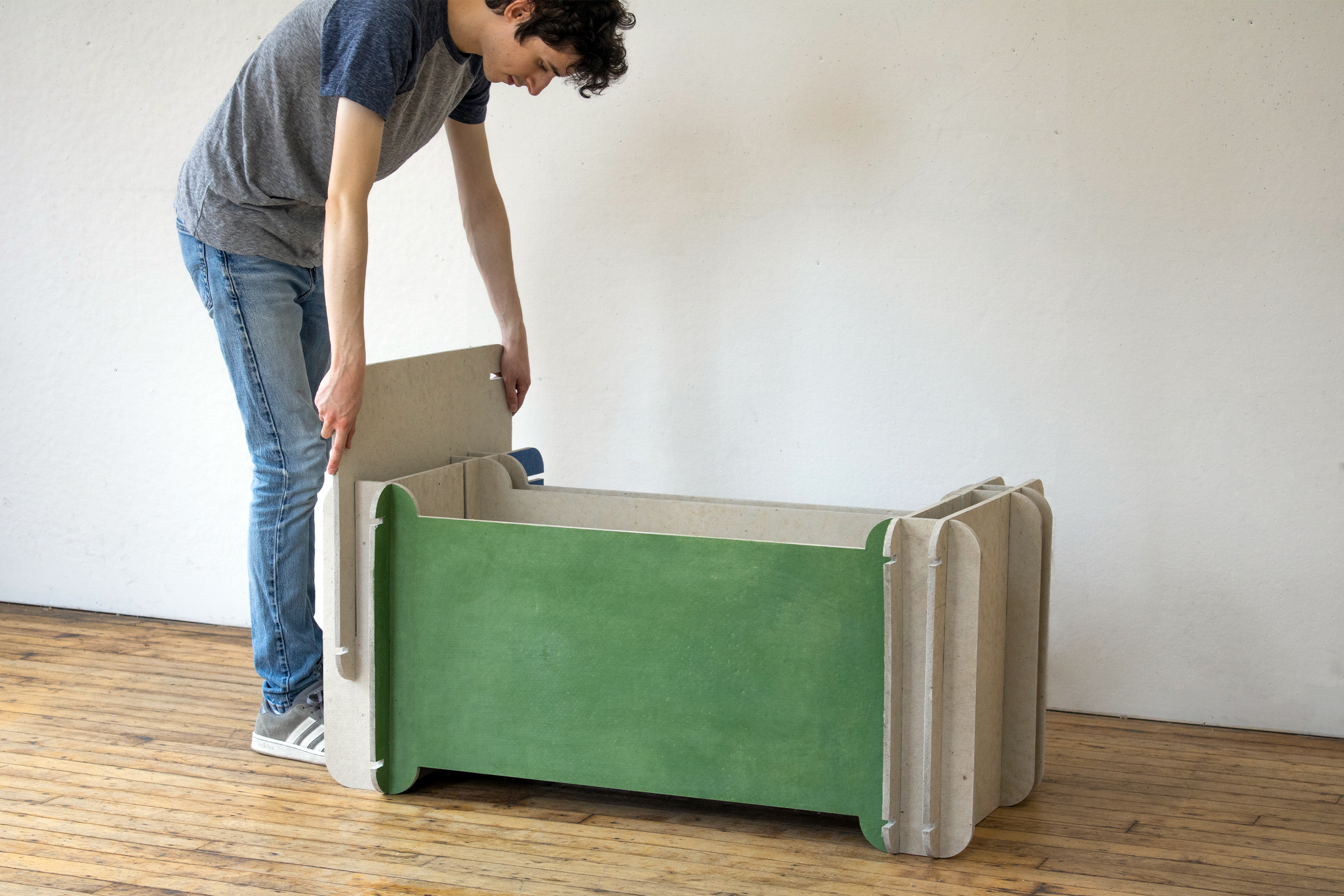 All components flat pack and assemble without hardware.