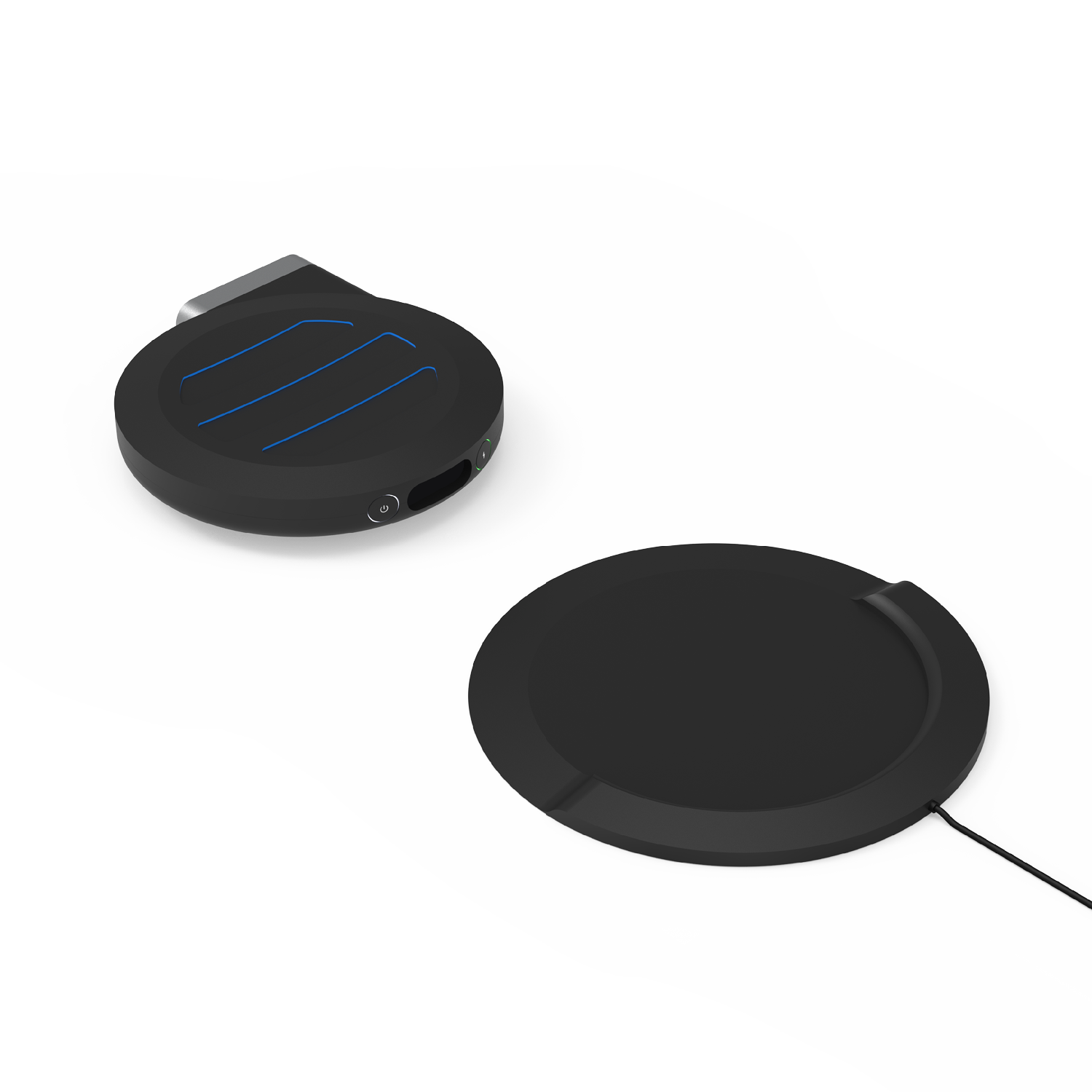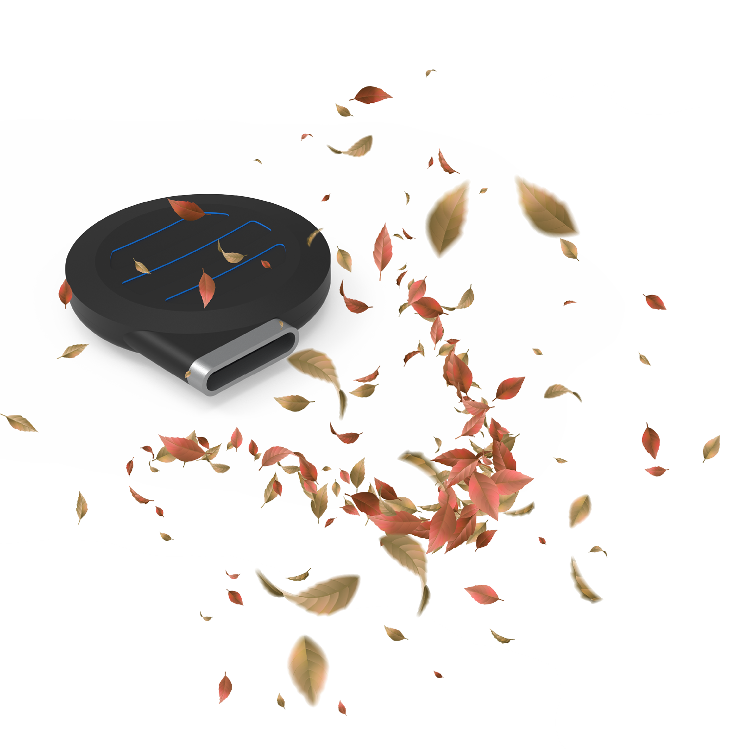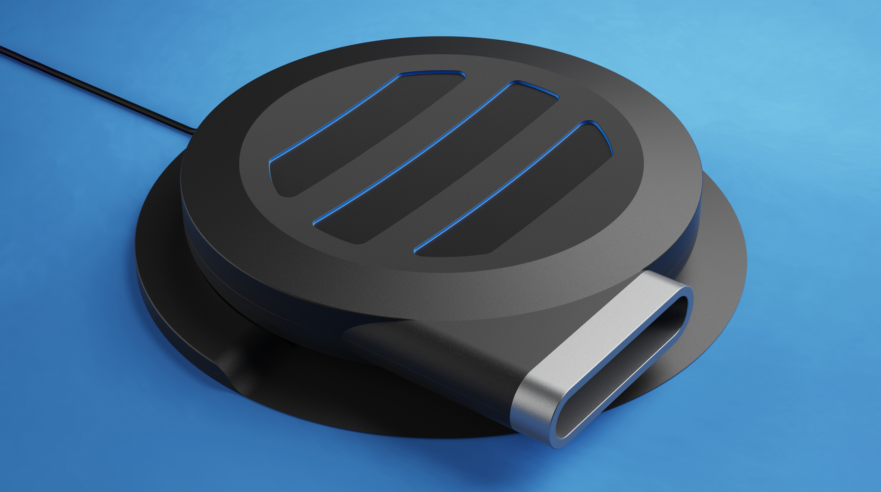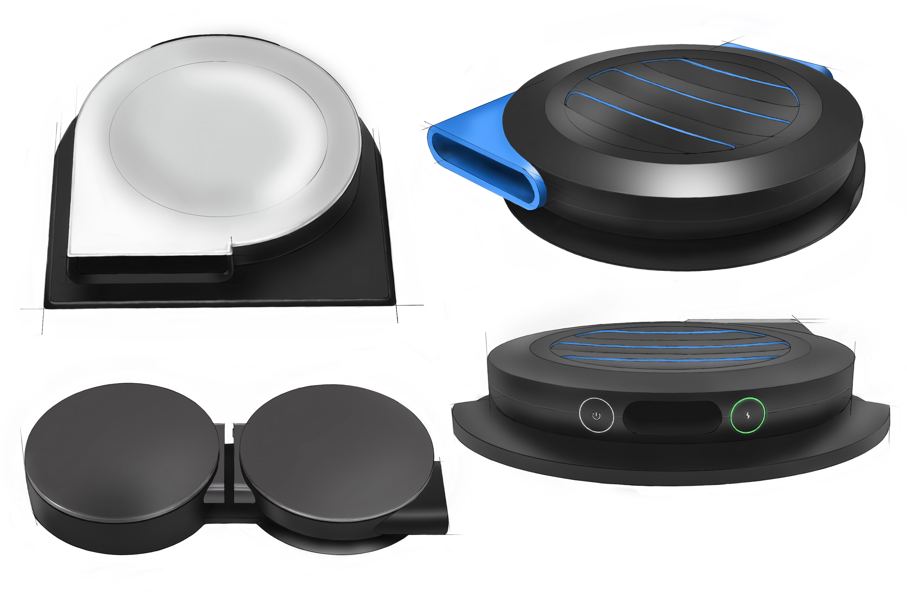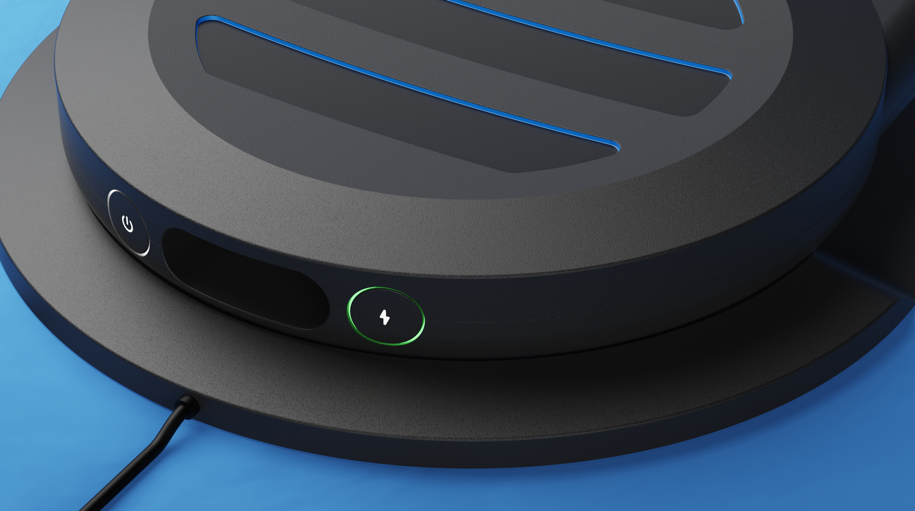 Air intake, back-up manual power button and covered charge port.